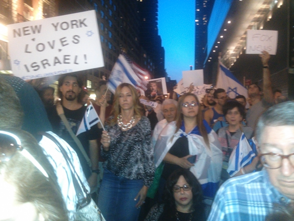 For-Israel Protest Against Media Bias, Time-Warner Center, New York City, August 7, 2014 07 Thursday Aug 2014 Original size at 584 × 438 ≈ Leave a comment Early Evening Pro-Israel Protest, Time-Warner Center, 59th Street and Columbus Circle, New York City, August 7, 2014. Used with permission of the photographer.